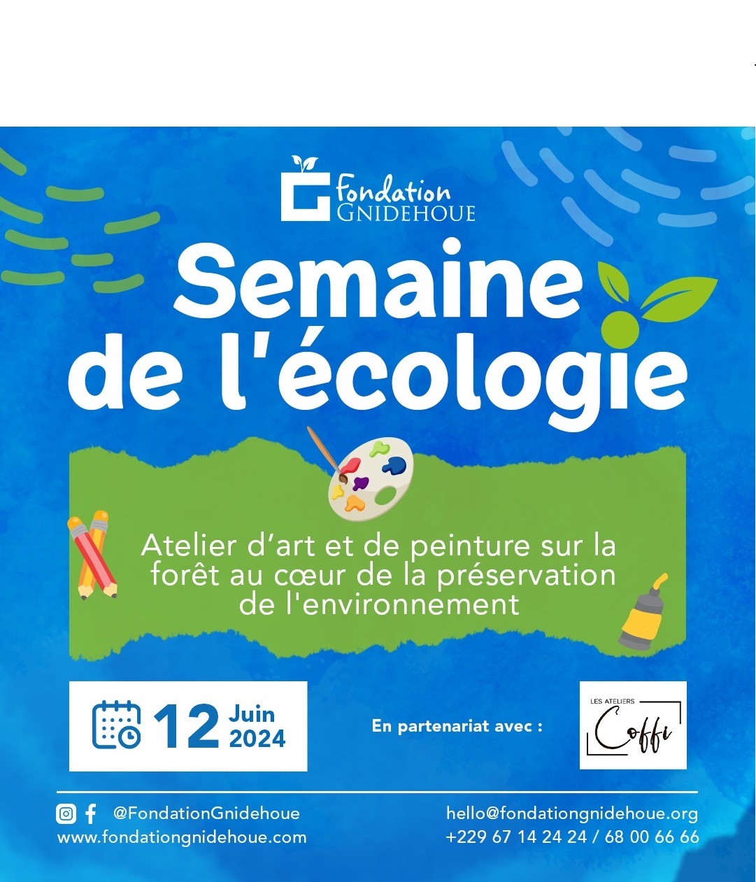 L’atelier de peinture a été réalisé en partenariat avec la galerie « Ateliers COFFI ». Des entreprises engagées en faveur de la durabilité ont été conviées à cette formation qui s’est déroulée dans l’atelier de la galerie. Animé par le talentueux artiste Charbel HOUAJETO, cet atelier a permis à des agents des entreprises ASIN, ENGIE Bénin, de découvrir son univers et ses œuvres dédiées au changement climatique. A cette occasion, les participants ont peint une toile qu’ils ont ramené et exposé dans les locaux de leur entreprise.
